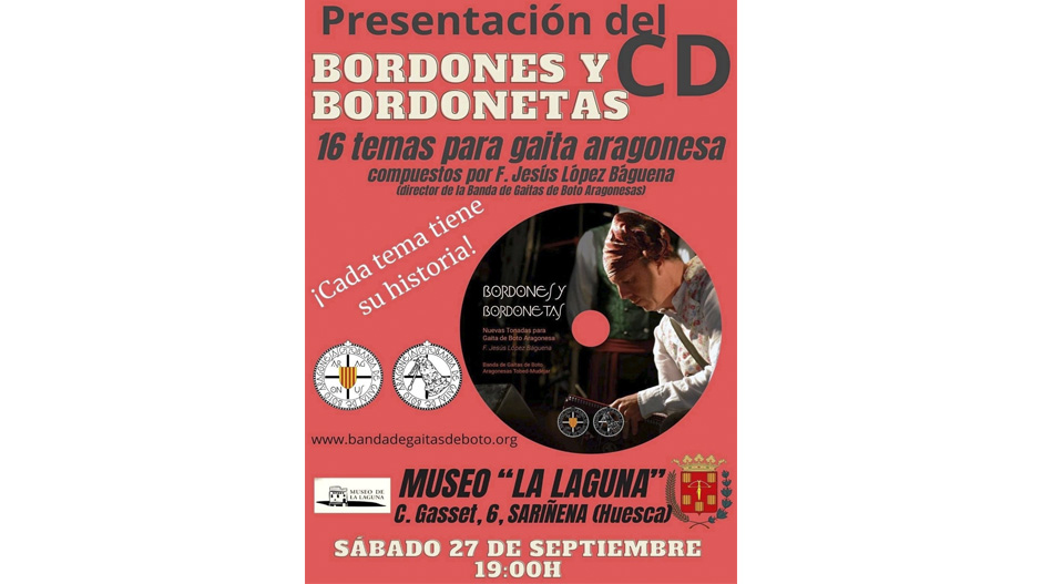 El Museo de La Laguna de Sariñena sigue sumando nuevas actividades y reforzando su papel como lugar de encuentro cultural y social. El próximo sábado, 27 de septiembre, a las 19.00 horas, acogerá la presentación del disco “Bordones y Bordonetas”, que reúne 16 temas inéditos para gaita aragonesa compuestos por F. Jesús López Báguena, director de la Banda de Gaitas de Boto Aragonesas.