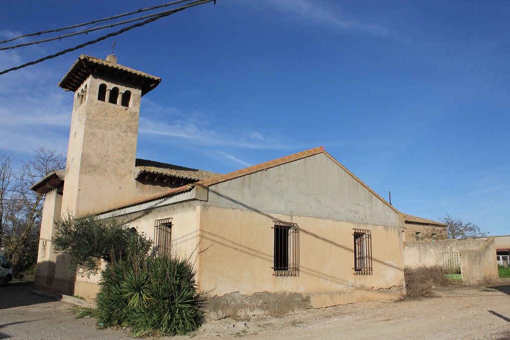 El edificio presenta planta basilical, alargada y rectangular, de una única nave y testero plano. De volúmenes cúbicos y macizos, la entrada se hace bajo un arco de medio punto. Los pocos vanos que se abren son del mismo estilo, una reminiscencia al arte románico que tanto gustaba a los arquitectos de Regiones Devastadas. La torre, ubicada a la derecha de la entrada, repite los mismos vanos y presenta un vistoso tejado a cuatro aguas. En un conjunto tan formal y falto de ornamento, la única licencia decorativa son las columnillas helicoidales que parten los vanos gemelados del edificio. Tanto la iglesia como la torre se coronan con un generoso alero de madera bajo el tejado, al más puro estilo aragonés.