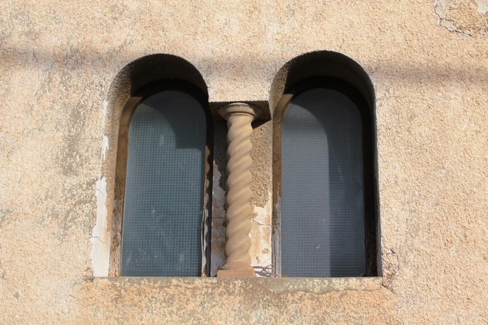 El edificio parroquial anexo, de una planta, presenta un pequeño pórtico en la fachada principal.