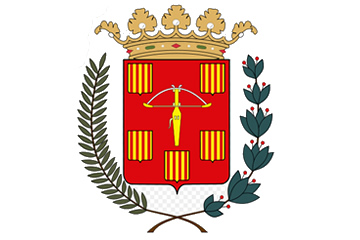 El escudo de Sariñena representa los emblemas locales: un único cuartel, con el arco y la ballesta en el centro, rodeada de cinco escudos con las barras de Aragón, sobre corona de laurel y bajo corona real con banda.