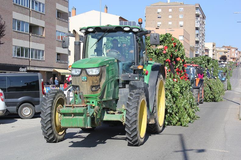 El punto de reunión es siempre la plaza de El Salvador. Al frente de la procesión, se sitúa el grupo de dance y detrás, la imagen de la Virgen de las Fuentes, que es portada por las mujeres. Tras ello, aparecen las carrozas, que se elaboran con ramas de chopo y se adornan con rosas. También suelen incluir refranes alusivos al patrón o a la actualidad local. Hay premios a las más vistosas y a los mejores versos.