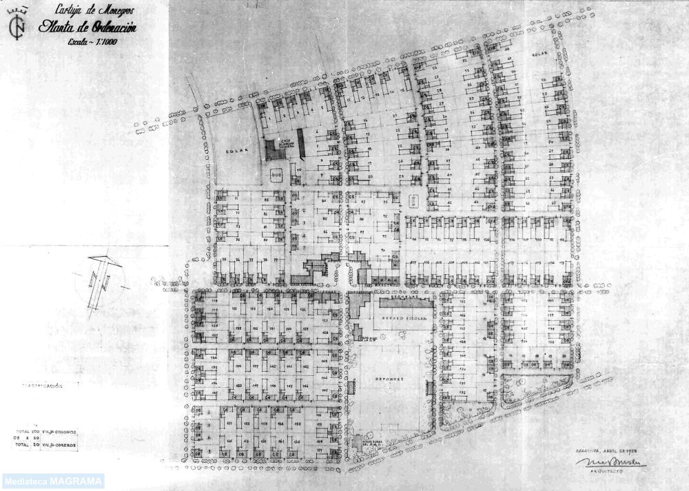 En 1956, su primer arquitecto, José Beltrán Navarro, diseñaría el primer proyecto del pueblo con 180 casas para colonos, y 20 para obreros agrícolas. Un total de 200 viviendas, para una estimación de unas 800 personas habitando la localidad.