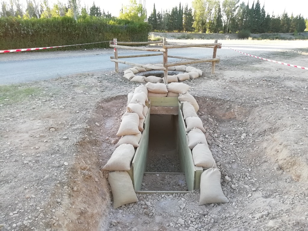En el perímetro de lo que constituyó la pista y superficie auxiliar se abre una línea continua de trinchera de al menos 2,8 kilómetros, perfectamente reconocible, excavada en tierra o en zahorra compactada, de un metro de ancho y un metro de profundidad apreciable en toda su dimensión. Se han recuperado 30 metros, en los que se pueden ver un puesto para ametralladora antiaérea y un polvorín de grandes dimensiones con sus correspondientes entradas y galerías.
