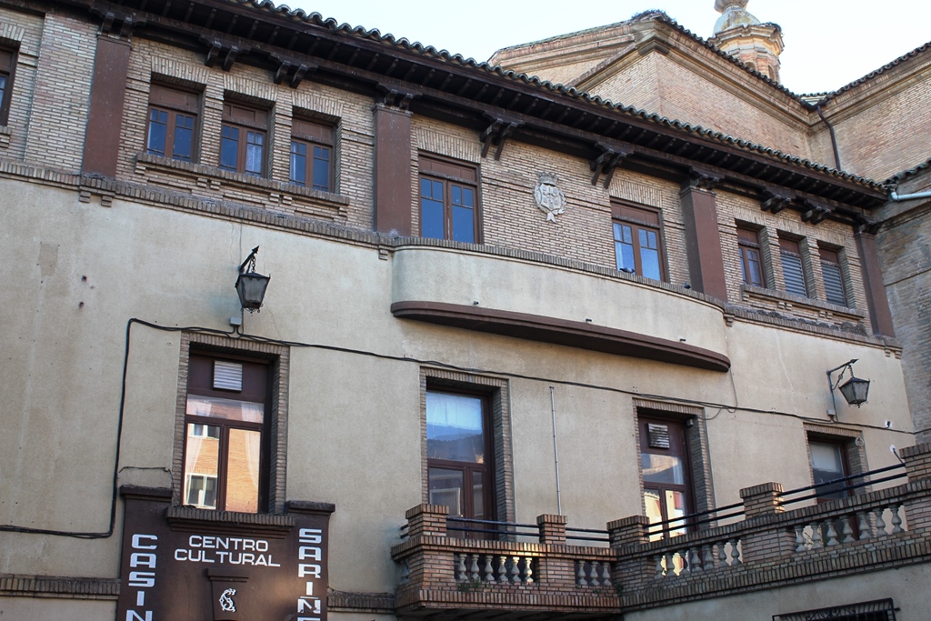En Sariñena tuvieron asiento las columnas Carlos Marx del PSUC y Lenin del POUM. Se documenta la presencia del anarquista Buenaventura Durruti, quien dio el histórico mitin conocido como “Discurso de Sariñena”, desde la terraza del Casino. También, en otra fase de la guerra, la ministra Federica Montseny, de la CNT, arengó a las tropas desde el mismo balcón.