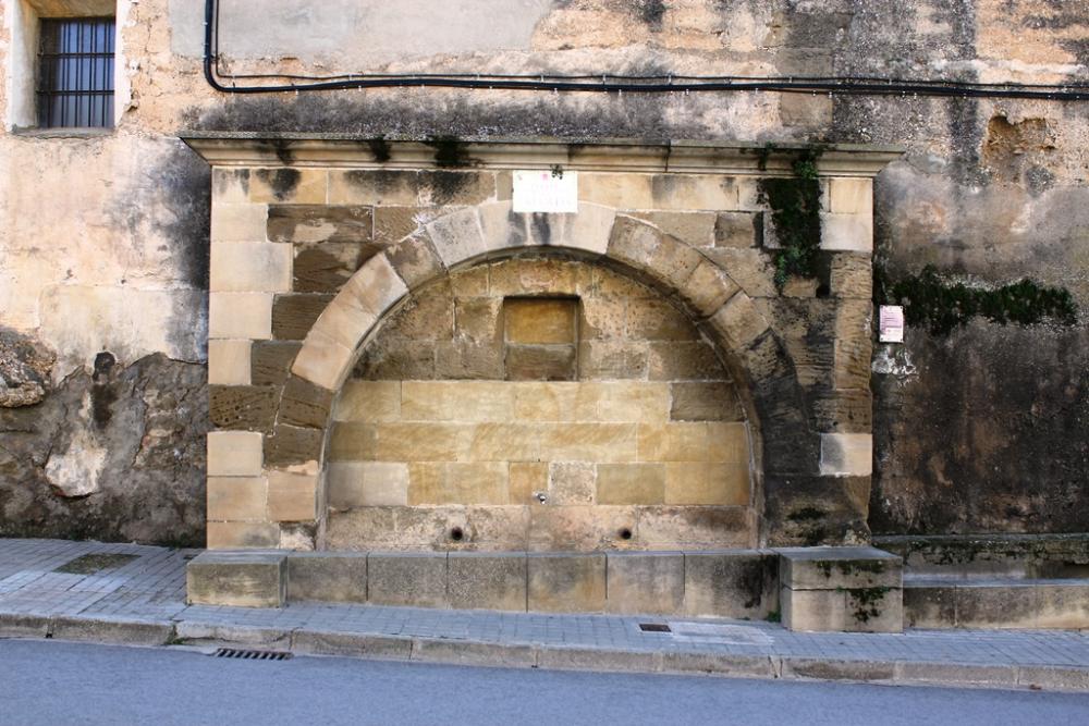 Un breve tramo de escaleras da acceso a la “Fuente del Saso” o “Fuente de los veinte caños”. De estructura cuadrangular, aunque irregular, y grandes dimensiones, la fuente consta de dos partes diferenciadas. A la izquierda se aprecia la primera obra fechada en enero de 1937, según reza en una breve leyenda en cemento, y que fue construida por el personal del aeródromo para dar servicio a la base aérea; una gran plataforma hormigonada circundada por las pilas, caños de agua y sobraderos cubre la zona de agua embalsada, conformando el resto de la fuente. A la derecha se aprecia la zona de lavaderos que servía para atender las necesidades de pilotos, técnicos y personal auxiliar del aeródromo.
