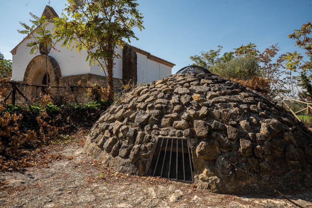 En el límite de las defensas del aeródromo y junto a la entrada de una granja, se encuentran una tumba rematada con una lápida y una estela de piedra.